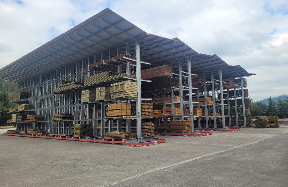 Para el almacenamiento en exteriores, nuestras estanterías cantilever con techo